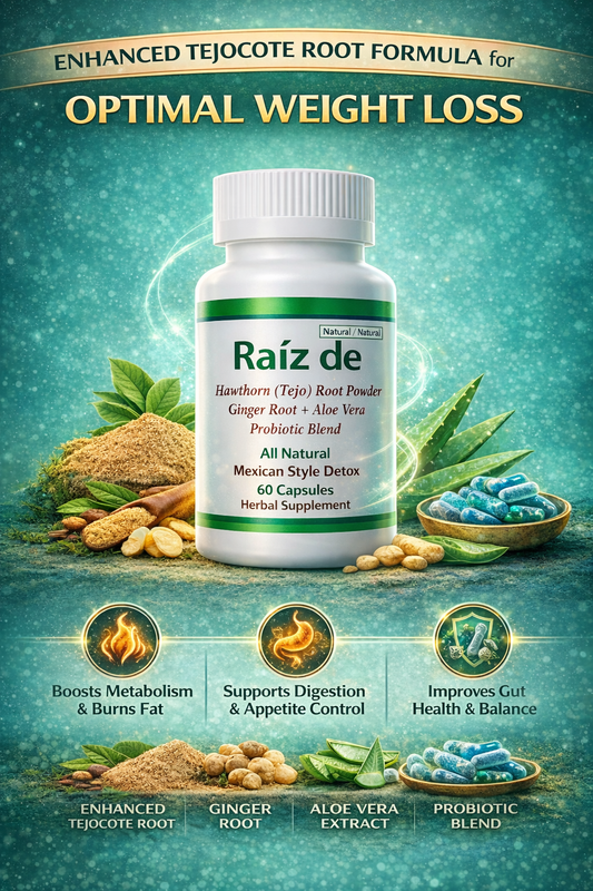 Authentic Raiz De™ Tejocote Line NEW TO MARKET - Hawthorn Powder Root Capsules with Ginger, Aloe Vera & Probiotics – 60 Count